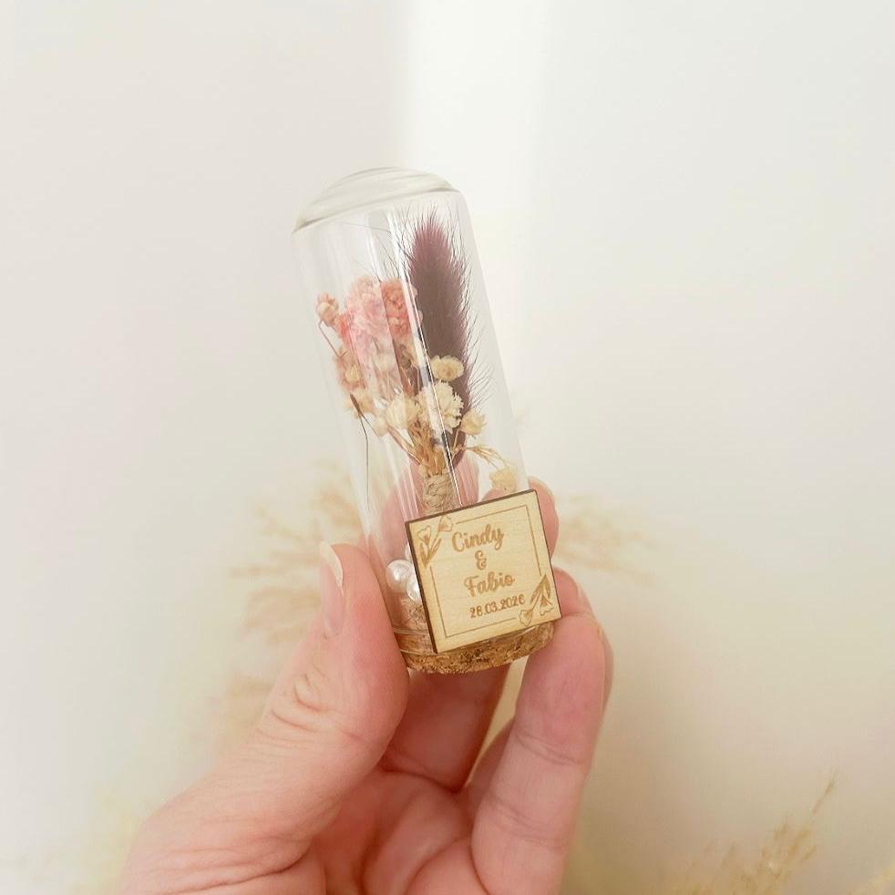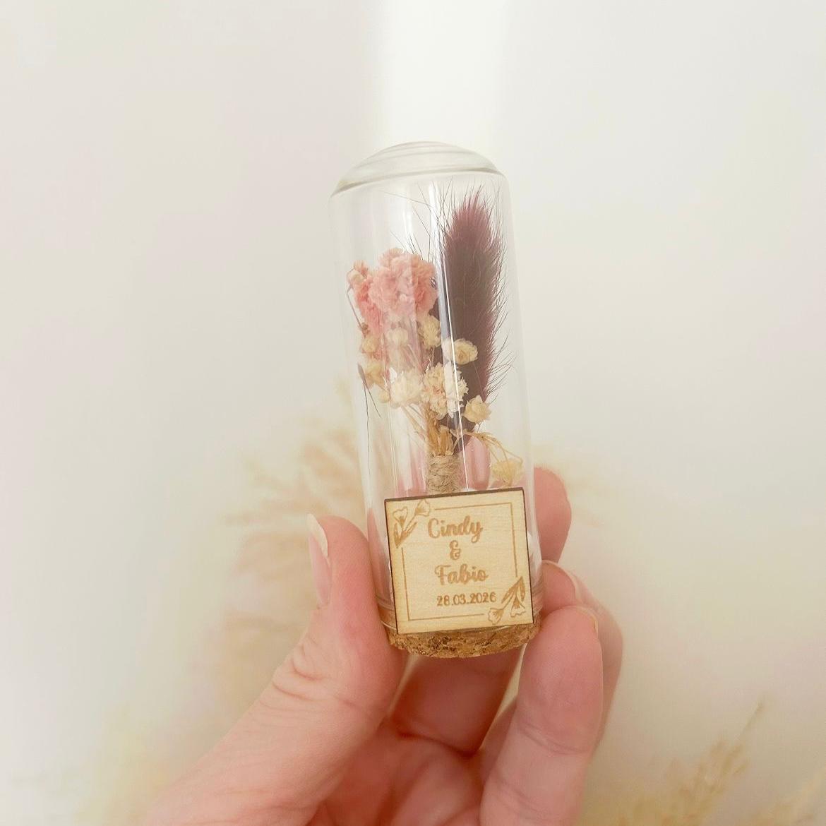 - Contenant en cloche de verre, pour une présentation élégante et délicate.