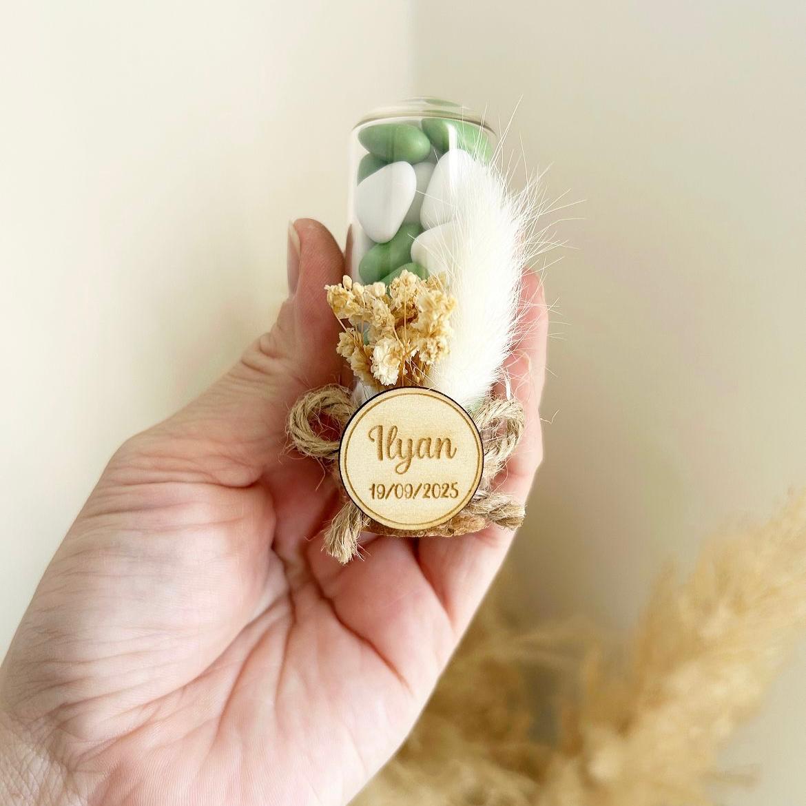 - Personnalisation par gravure sur un cœur en bois, pour une finition chaleureuse et authentique.